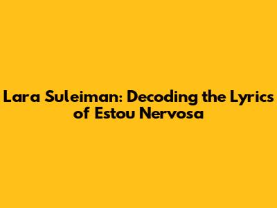 Hey guys! Let's dive deep into Lara Suleiman's hit, 'Estou Nervosa.' This track has been making waves, and for good reason. We're going to break down the lyrics, explore the themes, and really get to the heart of what makes this song so captivating. Whether you're a long-time fan or just discovering Lara Suleiman, you're in for a treat. So, grab your headphones, and let’s get started!