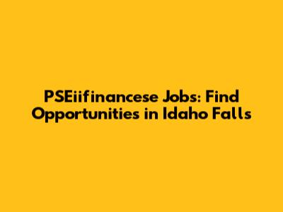 PSEiifinancese Jobs: Find Opportunities In Idaho Falls